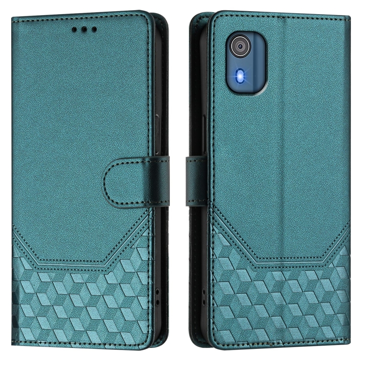 Funda de Cuero Rfid con Relieve en Panal para Nokia C02 (Verde Pavo Real)