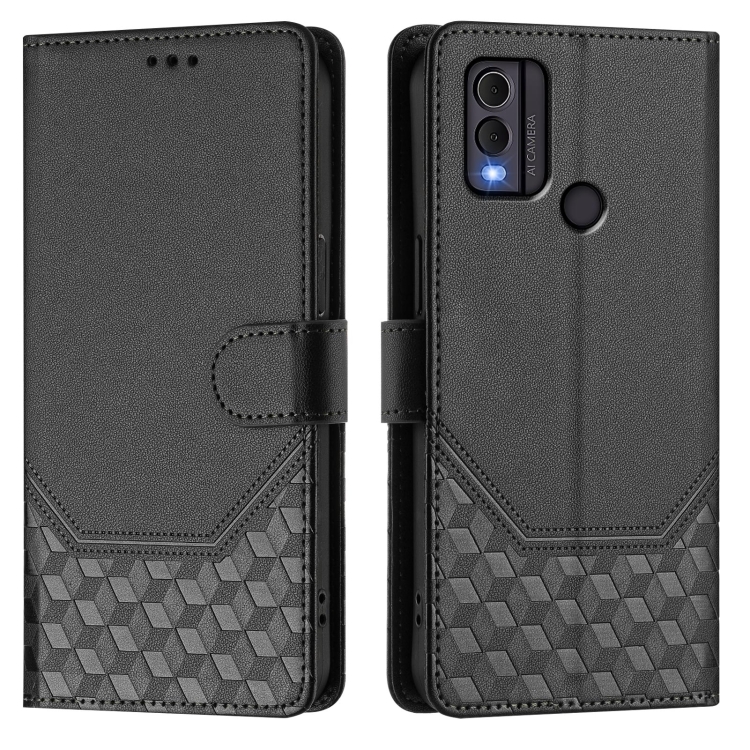 Funda de Cuero Rfid con Relieve en Panal para Nokia C22 (Negra)