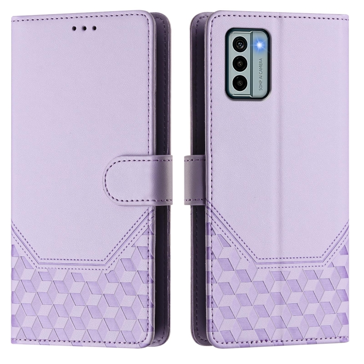 Funda de Cuero Rfid con Relieve en Panal para Nokia G22 (Morado Claro)