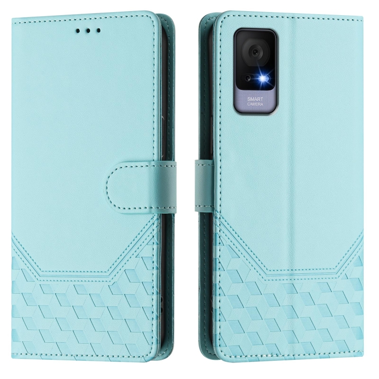 Funda de Cuero Rfid con Relieve en Panal para TCL 405/406/408 (Verde Menta)