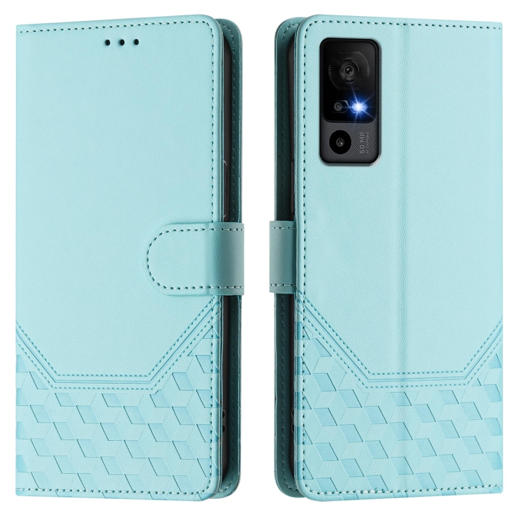 Funda de Cuero Rfid con Relieve en Panal para TCL 40R (Verde Menta)