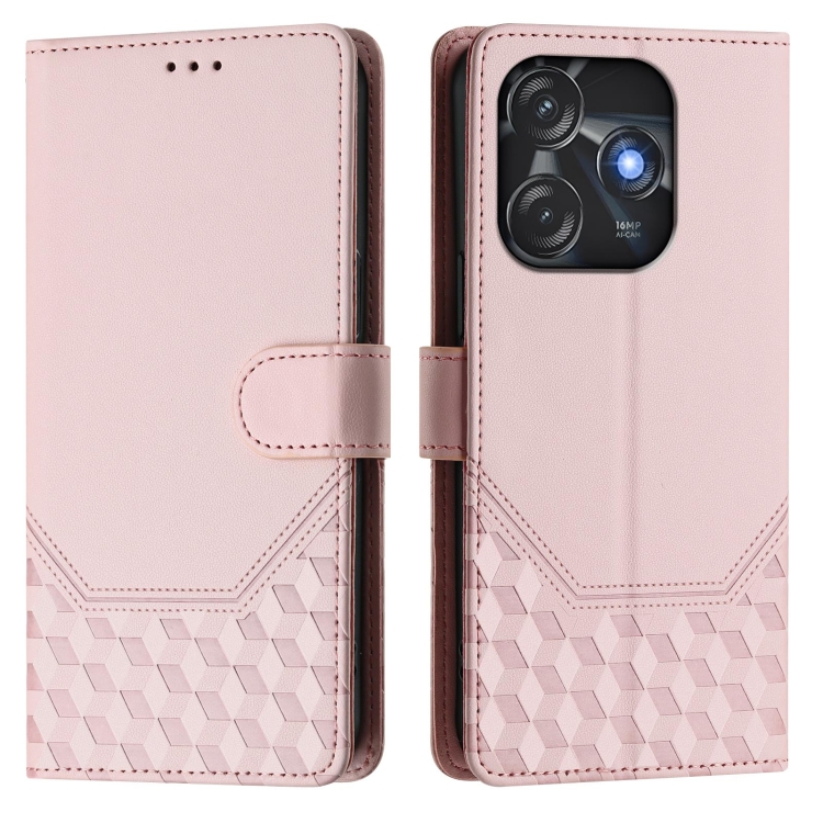 Funda de Cuero Rfid con Relieve en Panal para Tecno Spark 10C/10 4G (Rosa)