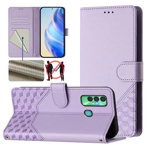 Funda de Cuero Rfid con Relieve en Panal para Tecno Spark 7P (Morado Claro)