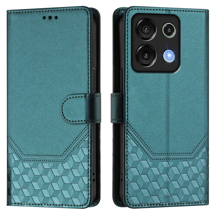 Funda de Cuero Rfid con Relieve en Panal para Teléfono Umidigi G9 5G (Verde Pavo Real)