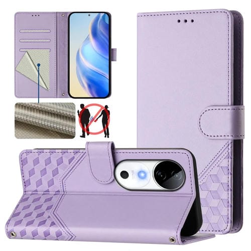 Funda de Cuero Rfid con Relieve En Panal para Vivo S19 (Morado Claro)
