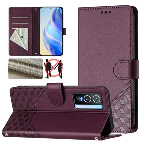 Funda de Cuero Rfid con Relieve En Panal para Vivo Y76 5G (Violeta)