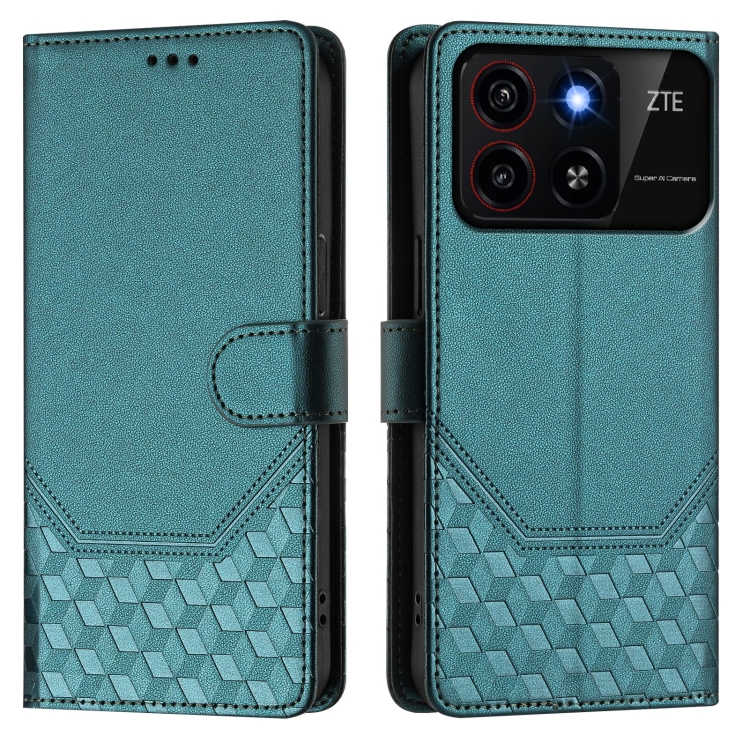 Funda Cuero Rfid con Relieve Panal para ZTE Blade A35/A55 (Verde Pavo Real)