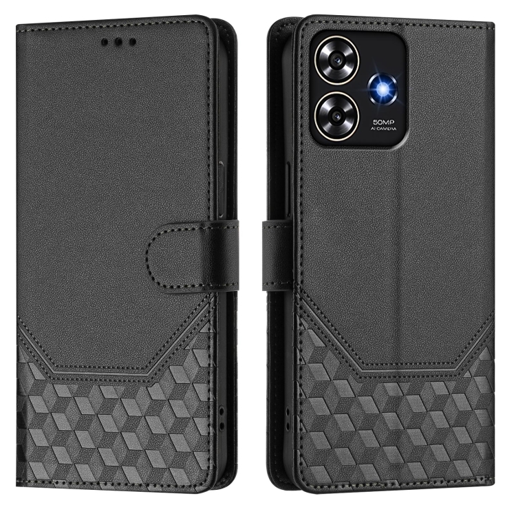 Funda de Cuero Rfid con Relieve en Panal para ZTE Blade A73 4G (Negra)