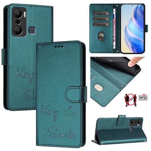 Funda de Cuero RFID con Relieve Smile para Infinix Hot 20 Play (Verde Pavo Real)