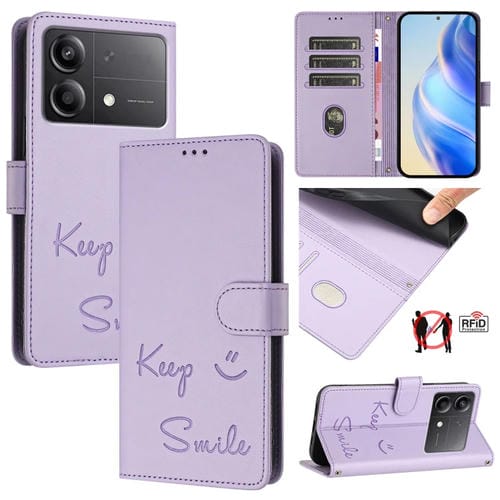 Funda de Cuero Rfid con Relieve Smile para Xiaomi Poco X6 Neo (Morado Claro)