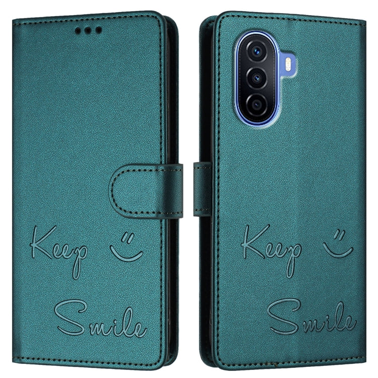 Funda de Cuero Rfid con Relieve Sonriente para Huawei Enjoy 50 4G (Verde Pavo Real)