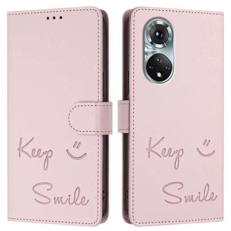 Funda de Cuero Rfid con Relieve Sonriente para Huawei Nova 9 (Rosa)