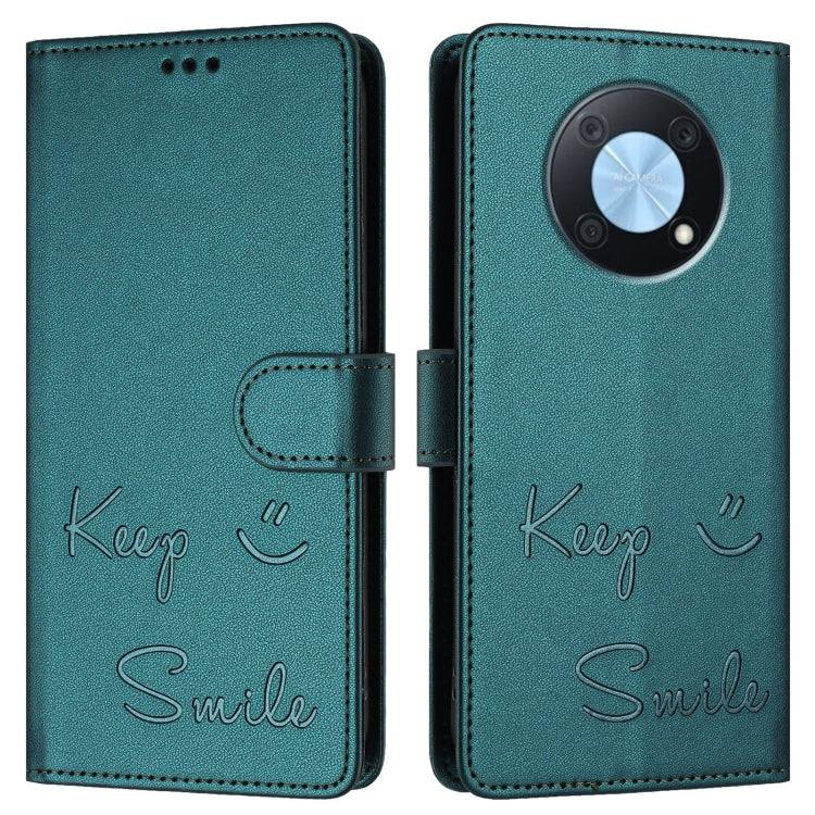 Funda de Cuero Rfid para Huawei Nova Y90 con Relieve Sonriente (Verde Pavo Real)