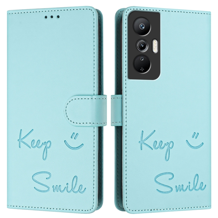 Funda de Cuero Rfid con Relieve Sonriente para Infinix Hot 20S y Hot 20 Pro (Verde Menta)