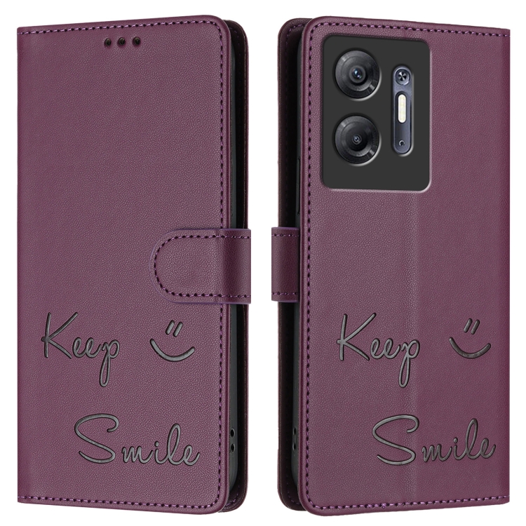 Funda de Cuero Rfid con Relieve Sonriente para Infinix Hot 30 5G (Violeta)