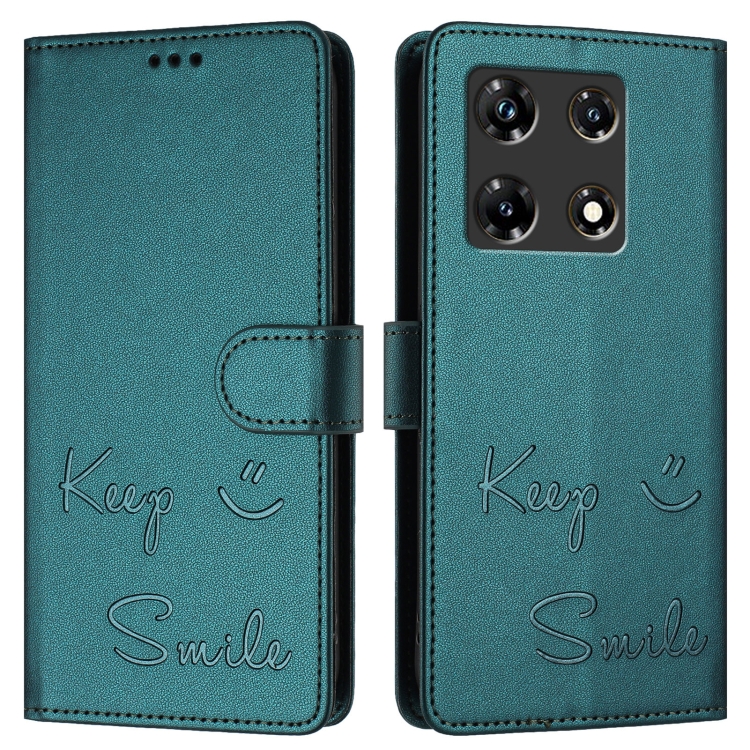 Funda de Cuero Rfid con Relieve Sonriente para Infinix Note 30 Pro y Note 30 5G (Verde Pavo Real)