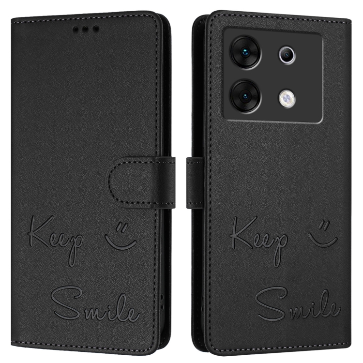 Funda de Cuero Rfid con Relieve Sonriente para Infinix Zero 30 5G (Negra)