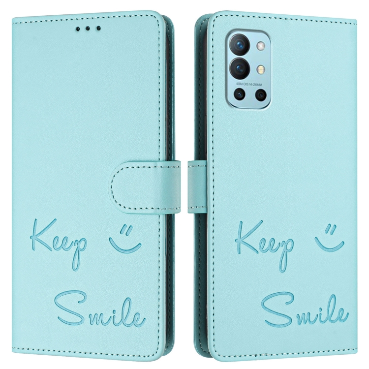 Funda de Cuero Rfid con Relieve Sonriente para OnePlus 9R y 8T (Verde Menta)