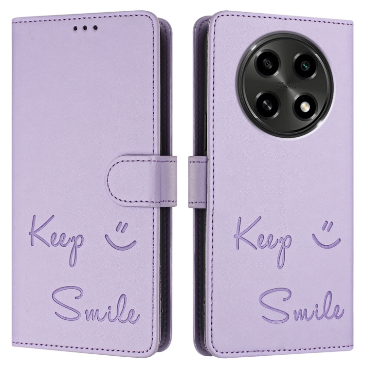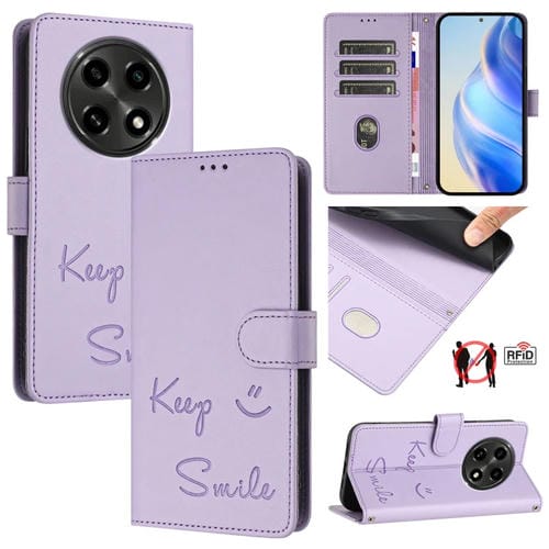 Funda de Cuero Rfid con Relieve Sonriente para Oppo A2 Pro 5G (Morado Claro)