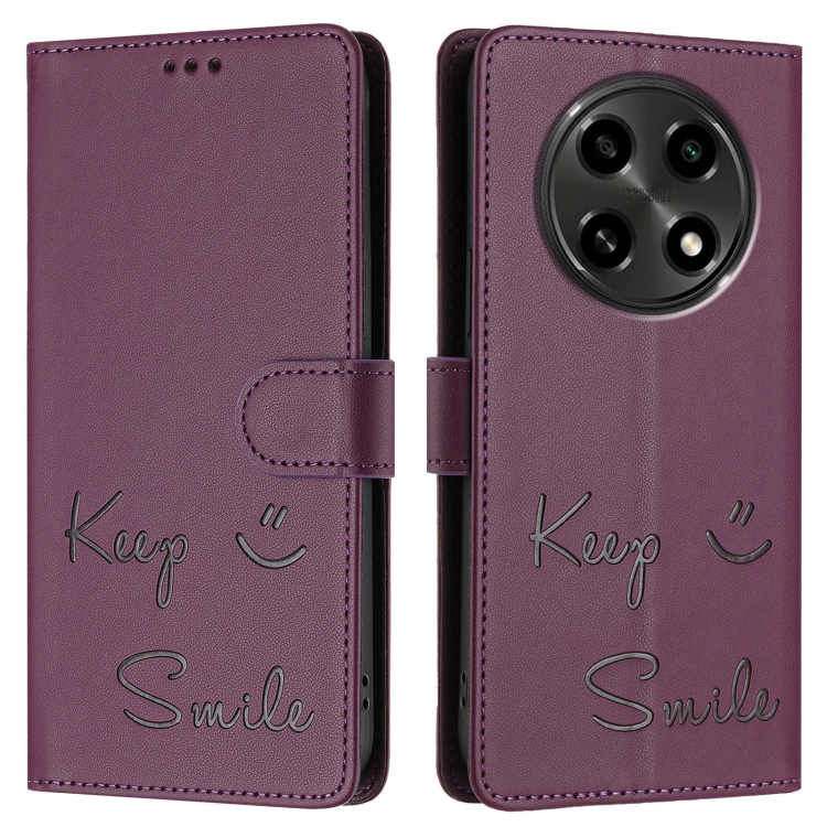 Funda de Cuero Rfid con Relieve Sonriente para Oppo A2 Pro 5G (Violeta)