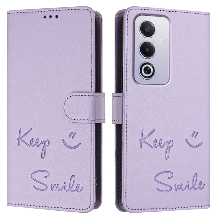 Funda de Cuero Rfid con Relieve Sonriente para Oppo A3 Pro 5G Global/India (Morado Claro)