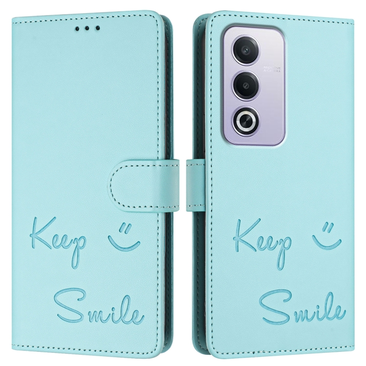 Funda de Cuero Rfid con Relieve Sonriente para Oppo A3 Pro 5G Global/India (Verde Menta)