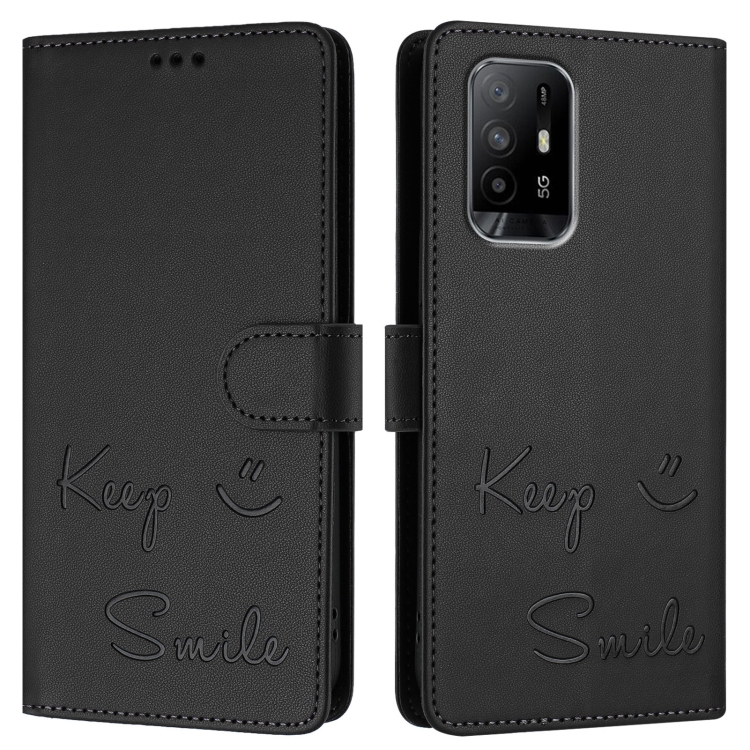 Funda de Cuero Rfid con Relieve Sonriente para Oppo A74 4G/F19/F19S (Negra)
