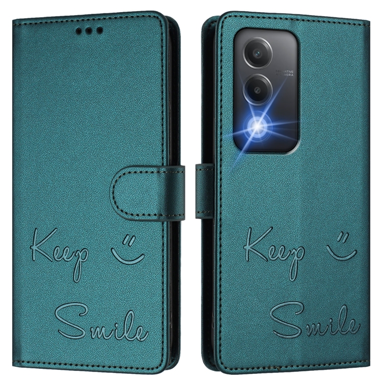 Funda de Cuero Rfid con Relieve Sonriente para Oppo A80 5G Eu (Verde Pavo Real)