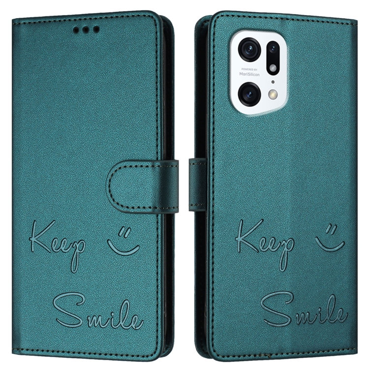 Funda de Cuero Rfid con Relieve Sonriente para Oppo Find X5 (Verde Pavo Real)