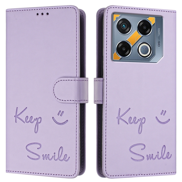 Funda de Cuero Rfid con Relieve Sonriente para Teléfono Infinix GT 20 Pro X6871 (Morado Claro)