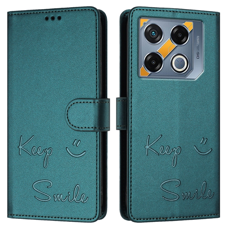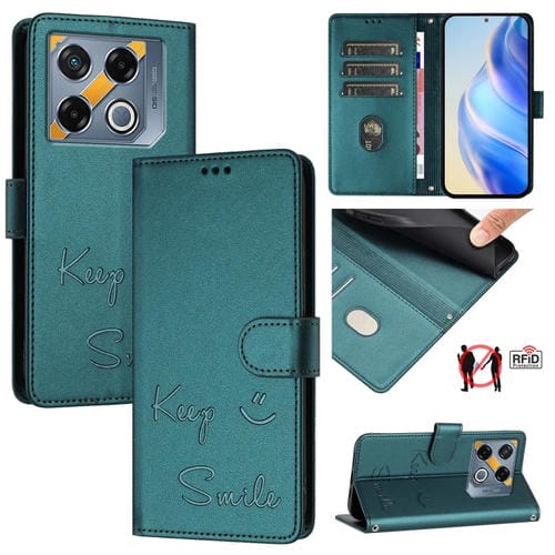 Funda de Cuero Rfid con Relieve Sonriente para Teléfono Infinix GT 20 Pro X6871 (Verde Pavo Real)