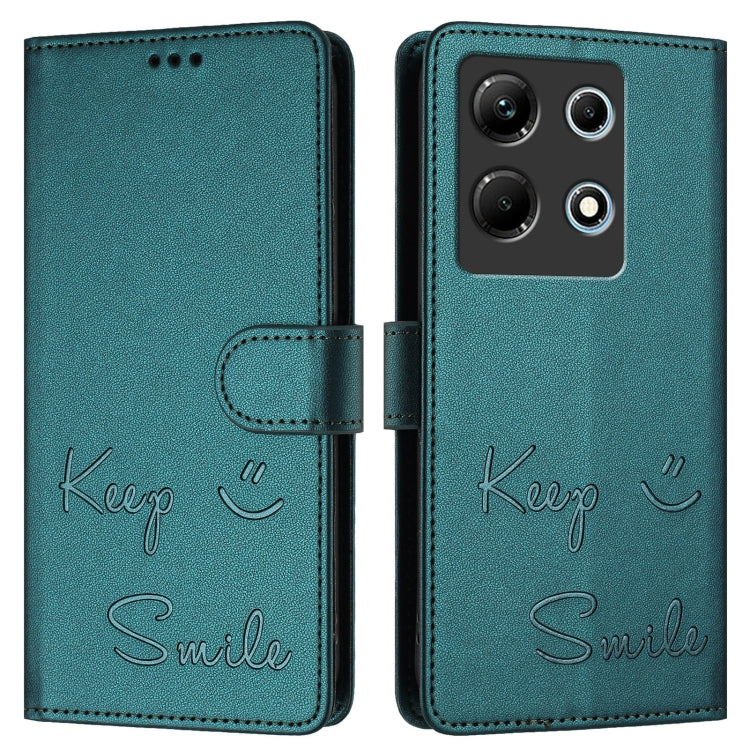 Funda de Cuero Rfid para Teléfono Infinix Note 30 4G X6833B con Relieve Sonriente (Verde Pavo Real)