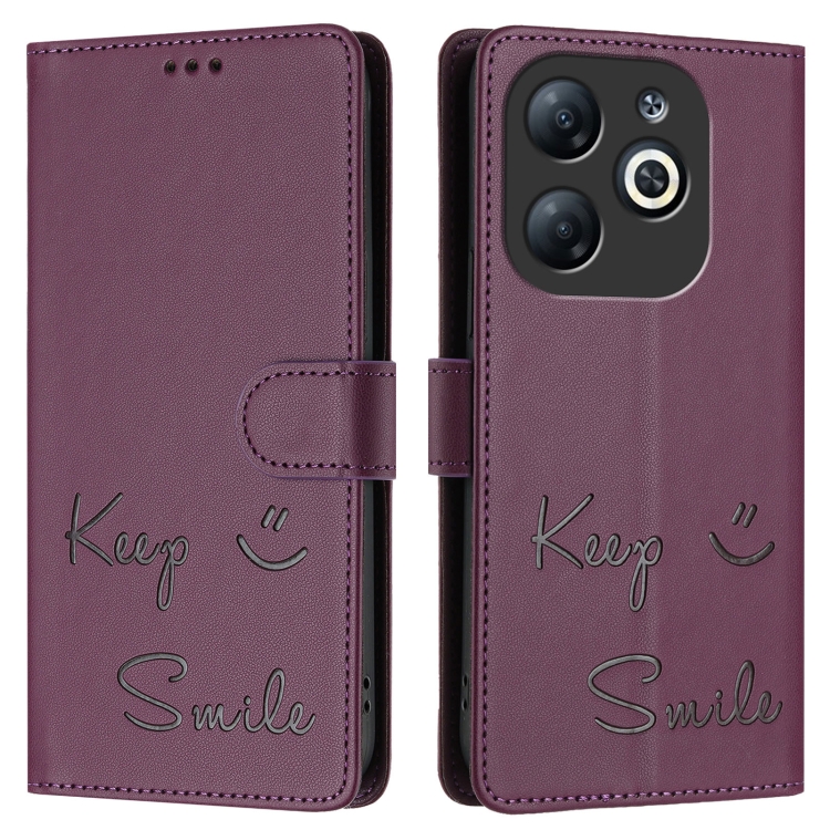 Funda de Cuero Rfid con Relieve Sonriente para Teléfono Infinix Smart 8 (Violeta)