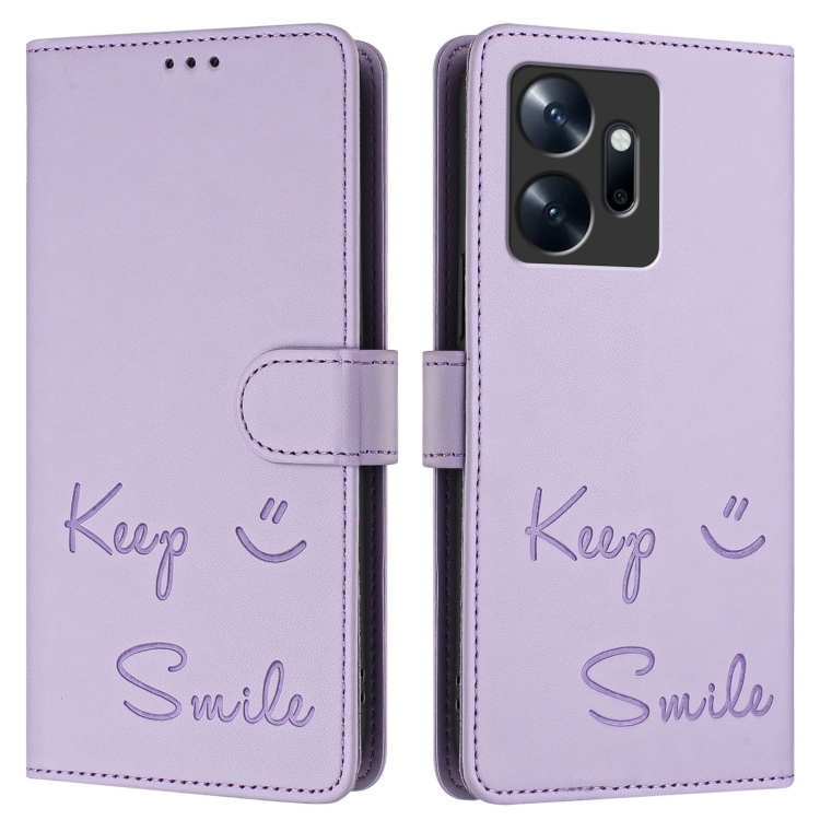 Funda de Cuero Rfid con Relieve Sonriente para Teléfono Infinix Zero 20 (Morado Claro)