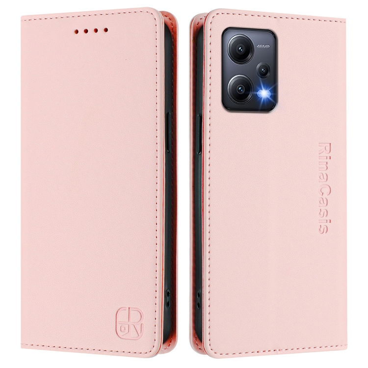 Funda de Cuero Rfid con Succión Magnética y Doble Pliegue para Redmi Note 12 5G India/Xiaomi Poco X5 Rc01 (Rosa)