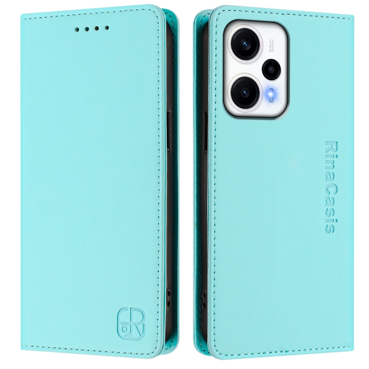 Funda de Cuero Rfid con Succión Magnética y Doble Pliegue para Redmi Note 12 Turbo 5G/Xiaomi Poco F5 Rc01 (Verde Menta)
