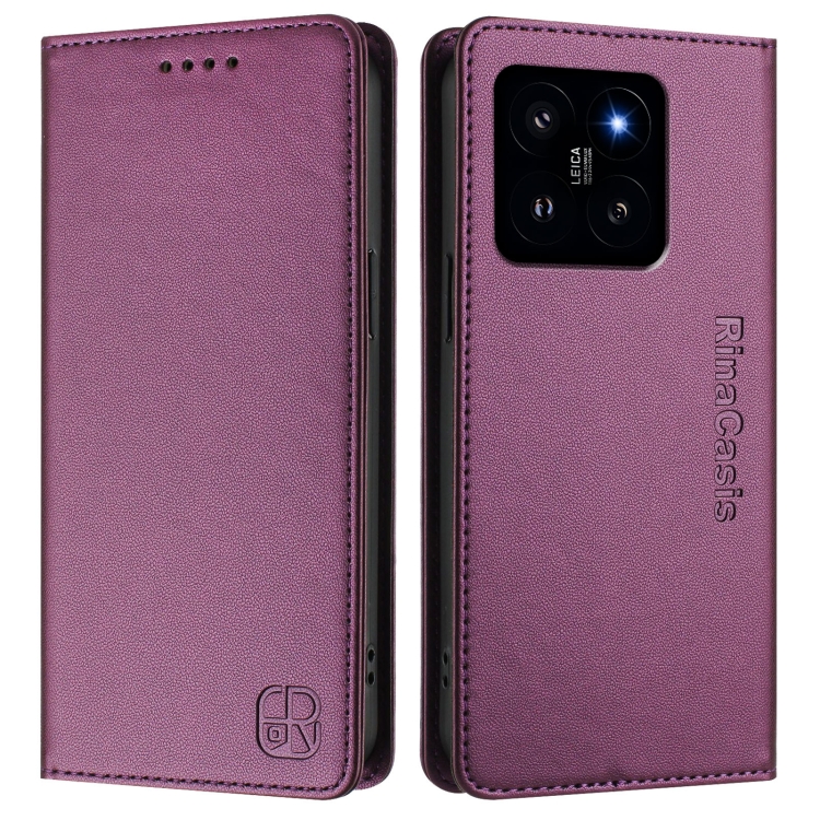 Funda De Cuero Rfid Con Succión Magnética Y Doble Pliegue Para Xiaomi 14 5G Rc01 (Violeta)