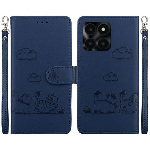 Funda de Cuero Rfid para Honor X6A con Diseño de Gatos (Azul)
