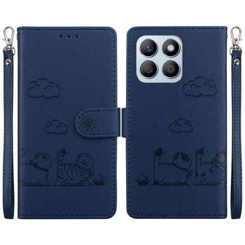 Funda de Cuero Rfid con Diseño de Gatos para Honor X8B (Azul)