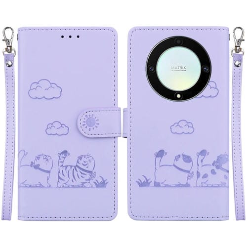 Funda de Cuero Rfid para Honor X9A con Diseño de Gatos (Morado)