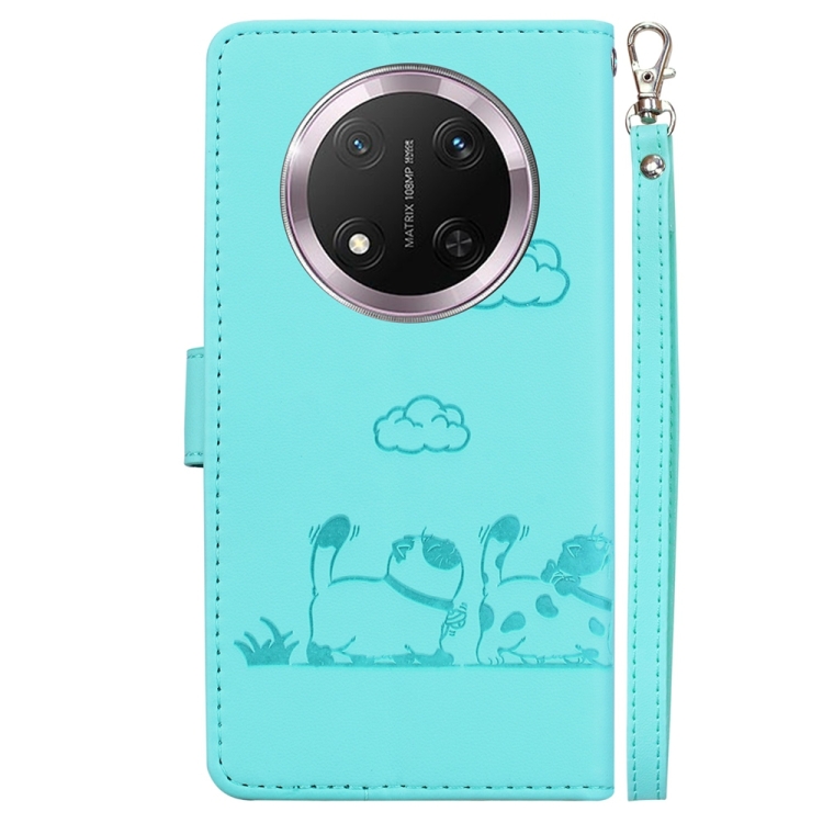 Funda de Cuero Rfid para Honor X9C con Diseño de Gatos (Verde)