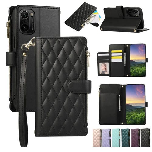 Funda de Cuero Tipo Billetera con Cremallera Rombal para Redmi K40 (Negra)