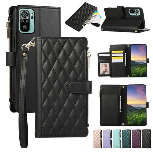 Funda de Cuero Tipo Billetera con Cremallera Rombal para Redmi Note 10/10S (Negra)