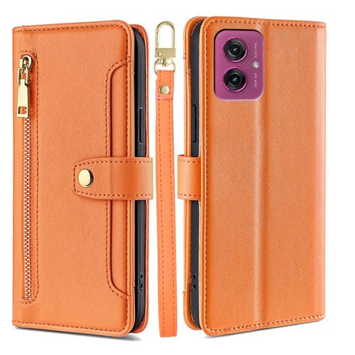 Funda de Cuero Tipo Billetera con Cremallera y Textura de Oveja para Motorola Moto G55 5G (Naranja)