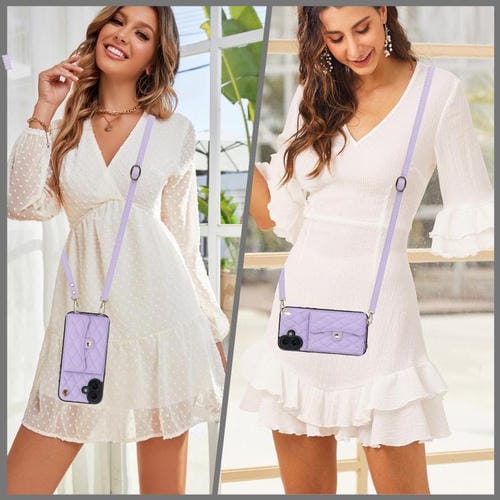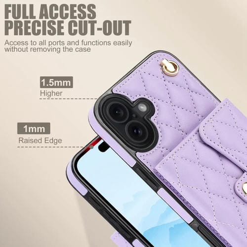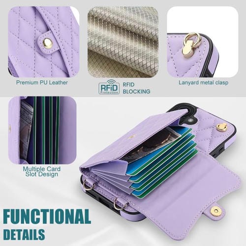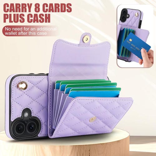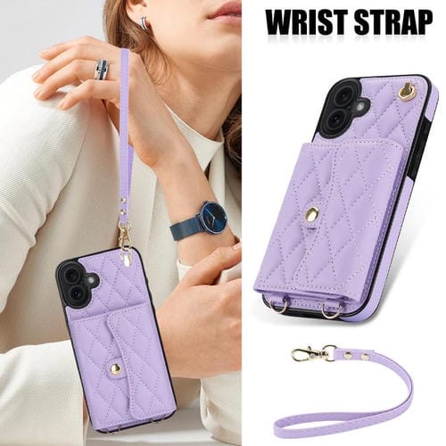 Funda de cuero tipo cartera horizontal con diseño rómbico cruzado para iPhone 17 (morado)