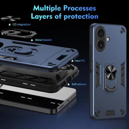 Funda de metal con anillo de metal a prueba de golpes para iPhone 17 (azul)