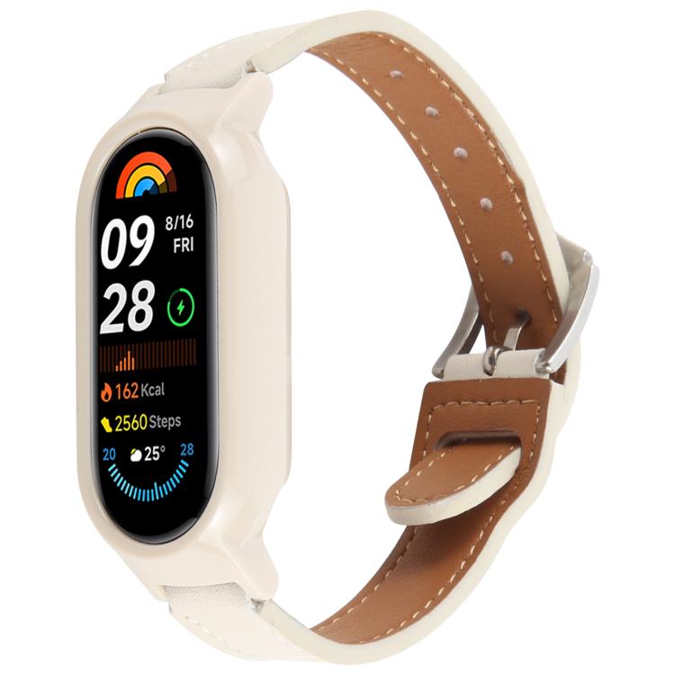 Funda de PC para Xiaomi Smart Band 9 con correa de cuero de microfibra integrada (beige + beige blanco)