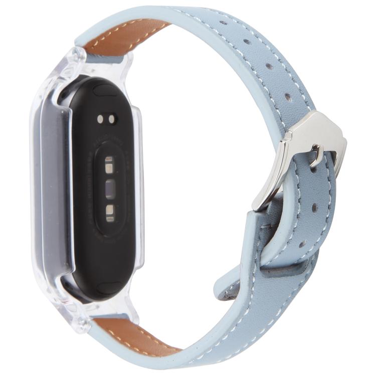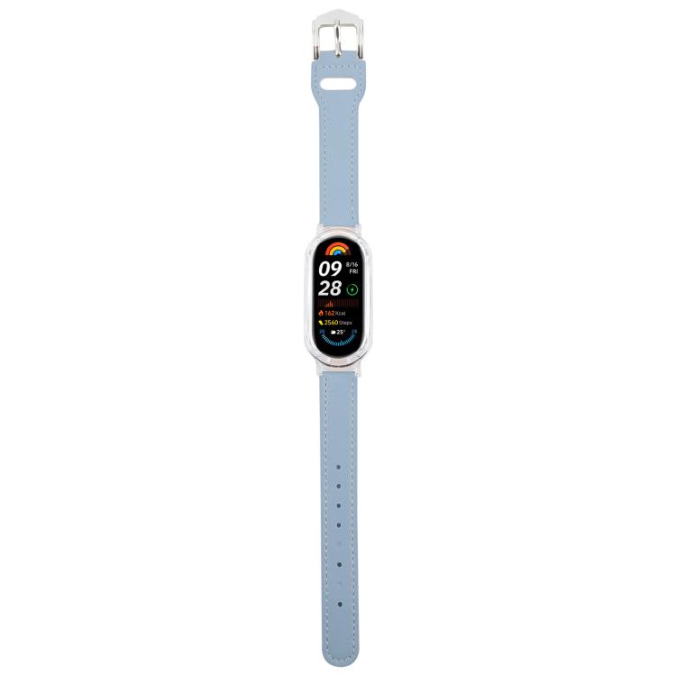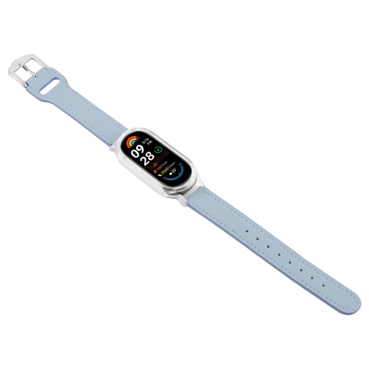 Funda de PC para Xiaomi Smart Band 9 con correa de cuero de microfibra integrada (transparente y azul)