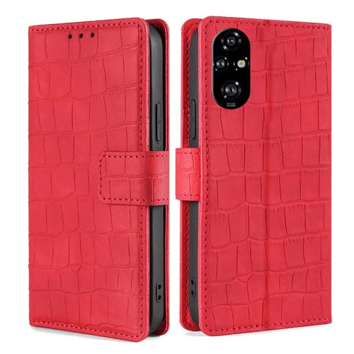 Funda de Piel Honor 200 Pro 5G con Cierre Magnético y Diseño de Cocodrilo (Rojo)
