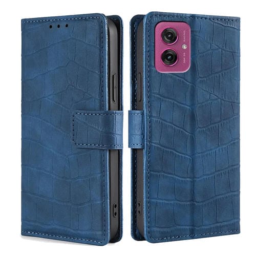 Funda de Piel con Cierre Magnético y Diseño de Cocodrilo para Motorola Moto G55 5G (Azul)